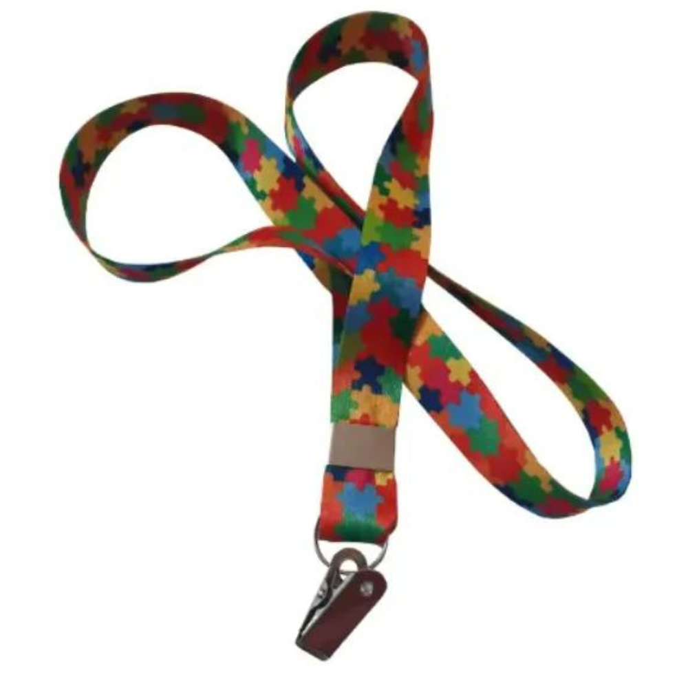 Cordão para crachás com o símbolo de quebra-cabeça, reconhecido mundialmente por representar o transtorno do espectro autista. Indicado para identificação das pessoas do TEA ou para profissionais que queiram conscientizar sobre o tema e homenagear seus pacientes.