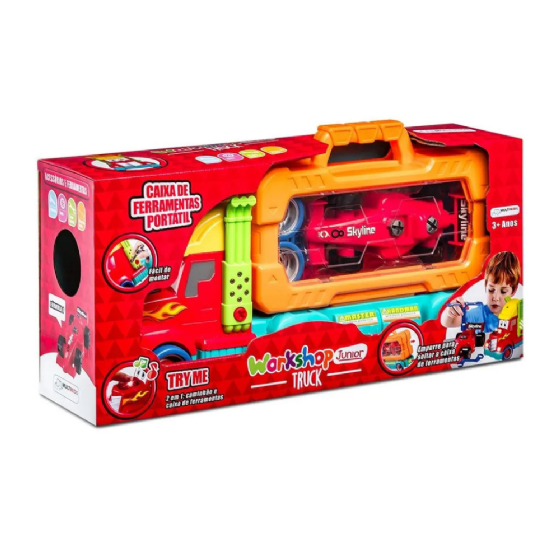 Este produto exclusivo foi projetado para proporcionar uma experiência única, prática e portátil. Com a versatilidade de ser um caminhão e uma caixa de ferramentas 2 em 1, a diversão pode ser levada para qualquer lugar! Imagens meramente ilustrativas, mas a realidade será ainda mais fascinante.